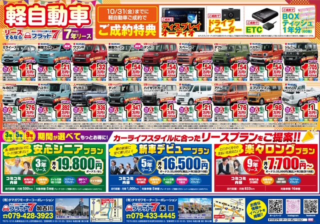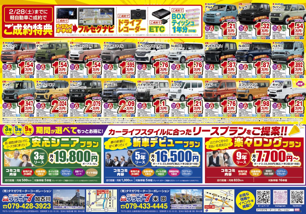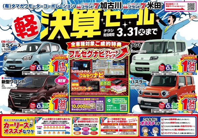 「新車に月々1万円から乗れる!」フラット7ならタマガワモーターコーポレーションにお任せください!